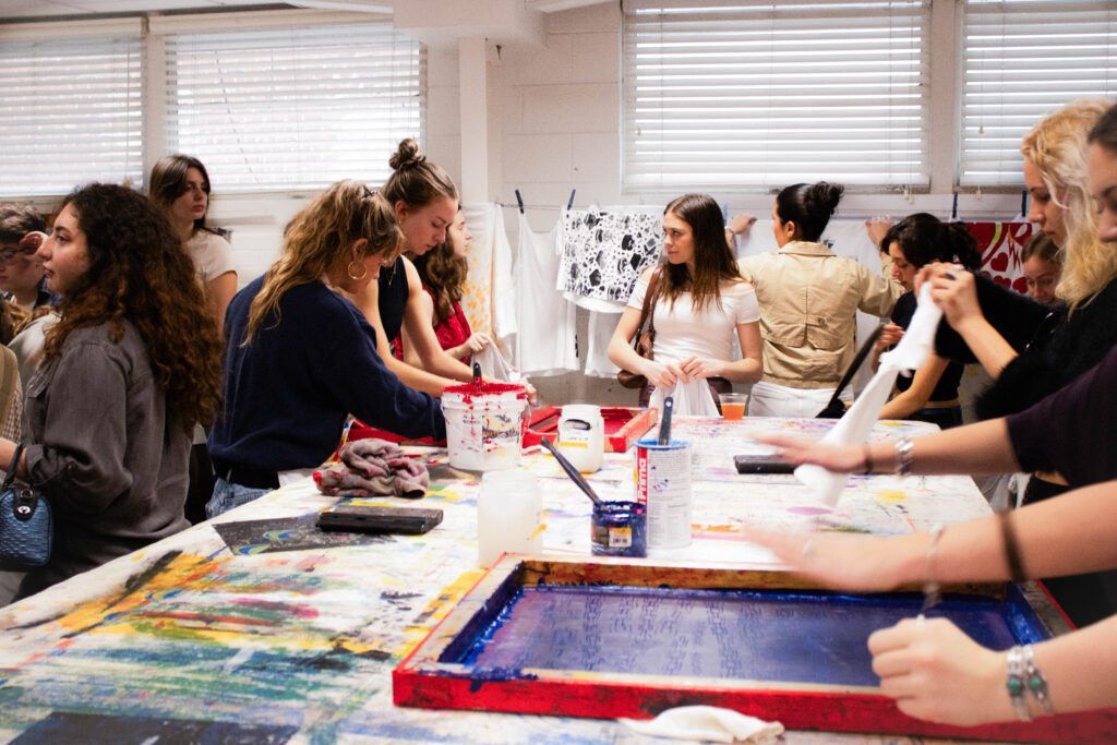 There were also so many fun activities for all ages during the exhilarating three hours. This year had screen printing, indigo dyeing, a sneak peak at looms, and the Embellished Band-Aid Lab, an exploration of creativity and healing by the talented Courtney Watts. There was something remarkably beautiful in seeing students, families, and alumni come together and experience the highlights of this truly underappreciated major. I’ll be counting down the days to the 2027 Fibers Open Studio to experience this fabulous event again! (It’s 352 days if you were curious.)